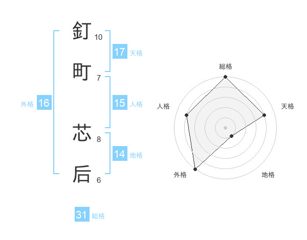 釘町 芯后さんの天格は17画の4点!