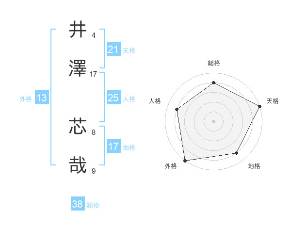 井澤 芯哉さんを姓名の画数から五運を鑑定