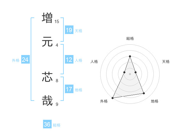 増元 芯哉さんの地格は17画の4点!