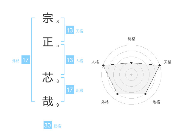 宗正 芯哉さんを姓名の画数から五運を鑑定