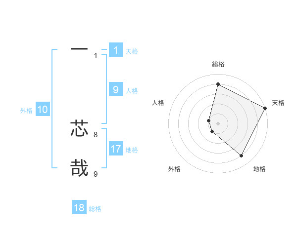一 芯哉さんの地格は17画の4点!