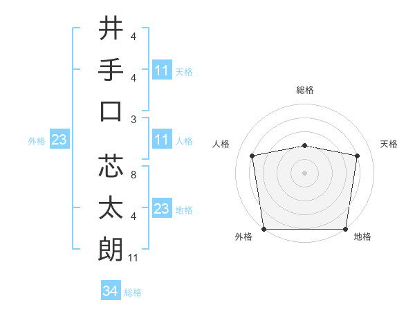 井手口 芯太朗さんの総格は34画の2点!