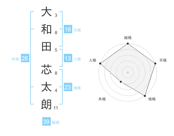 大和田 芯太朗さんを姓名の画数から五運を鑑定