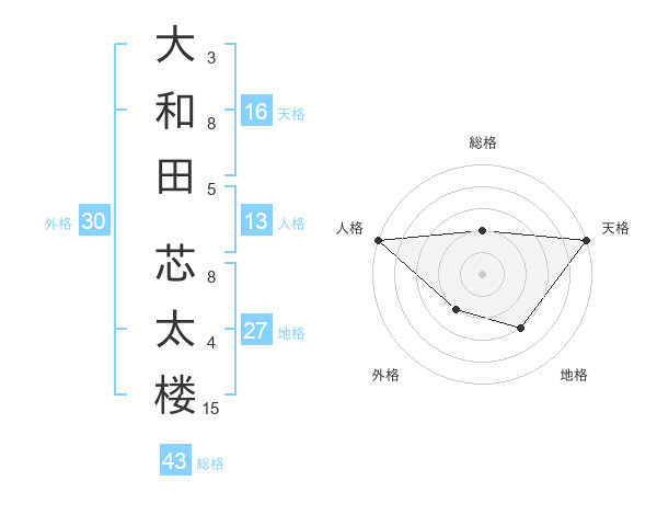 大和田 芯太楼さんの天格は16画の5点!