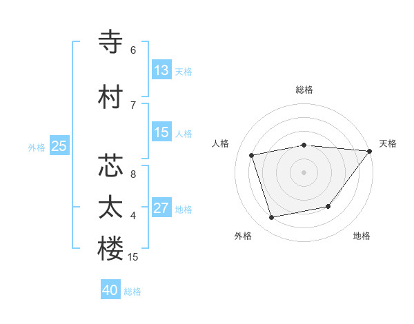 寺村 芯太楼さんの天格は13画の5点!
