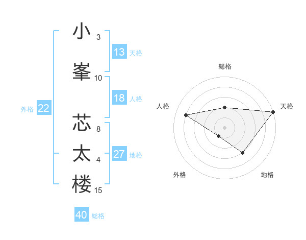 小峯 芯太楼さんを姓名の画数から五運を鑑定