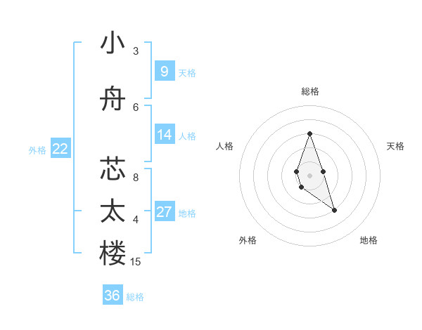 小舟 芯太楼さんの総格は36画の3点!