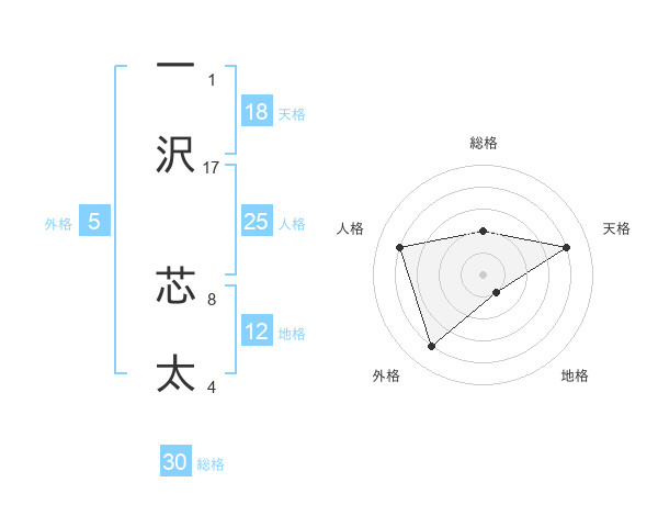 一沢 芯太さんを姓名の画数から五運を鑑定