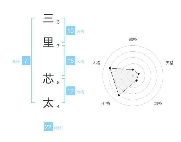 三里 芯太さんの総格は22画の1点!