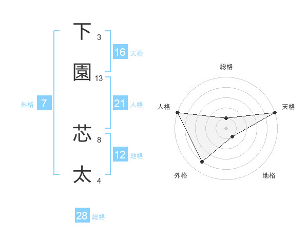 下園 芯太さんの天格は16画の5点!