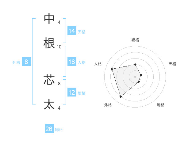 中根 芯太さんの総格は26画の2点!