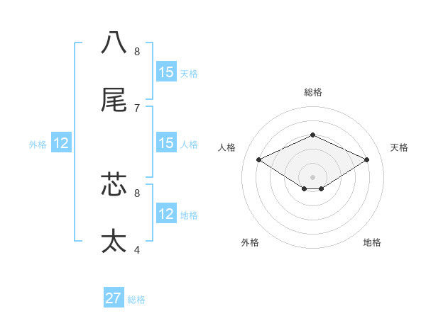 八尾 芯太さんを姓名の画数から五運を鑑定