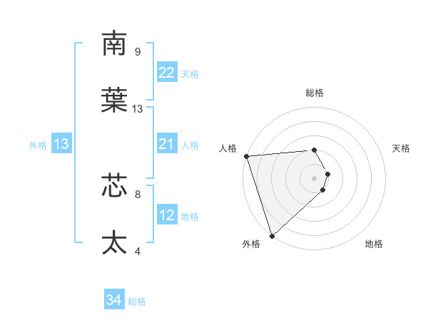 南葉 芯太さんを姓名の画数から五運を鑑定