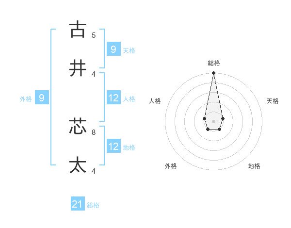 古井 芯太さんの総格は21画の5点!