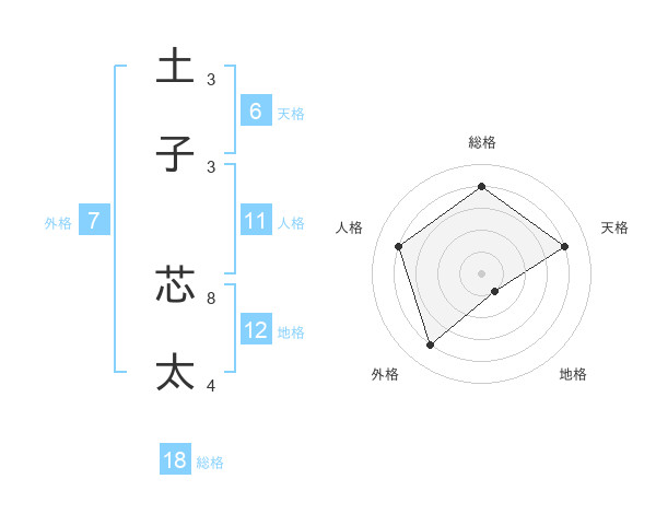 土子 芯太さんの総格は18画の4点!