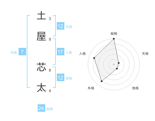 土屋 芯太さんを姓名の画数から五運を鑑定