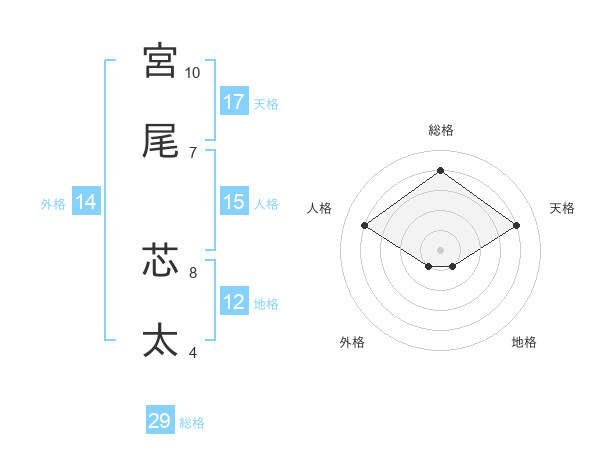 宮尾 芯太さんの総格は29画の4点!