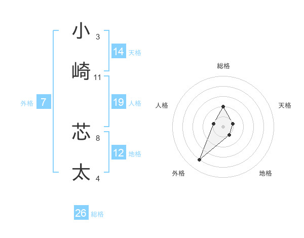 小崎 芯太さんを姓名の画数から五運を鑑定