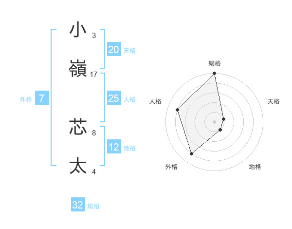 小嶺 芯太さんの総格は32画の5点!