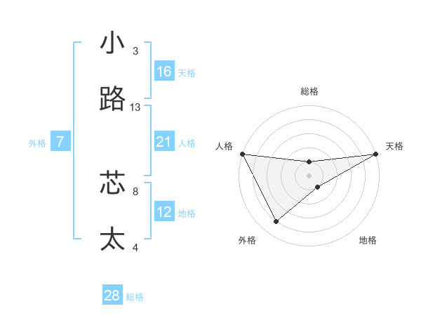 小路 芯太さんの天格は16画の5点!