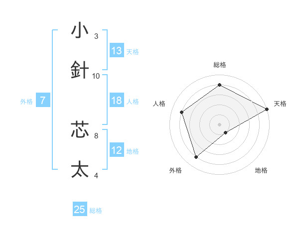 小針 芯太さんの天格は13画の5点!