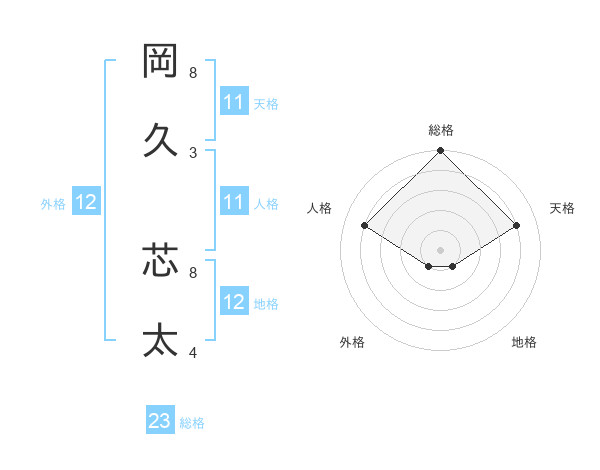 岡久 芯太さんを姓名の画数から五運を鑑定