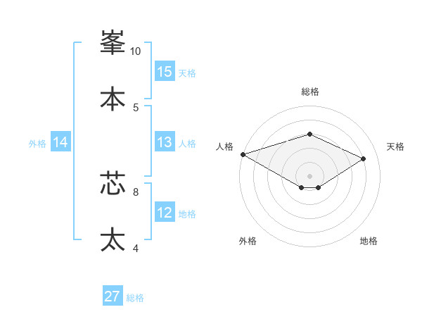 峯本 芯太さんを姓名の画数から五運を鑑定
