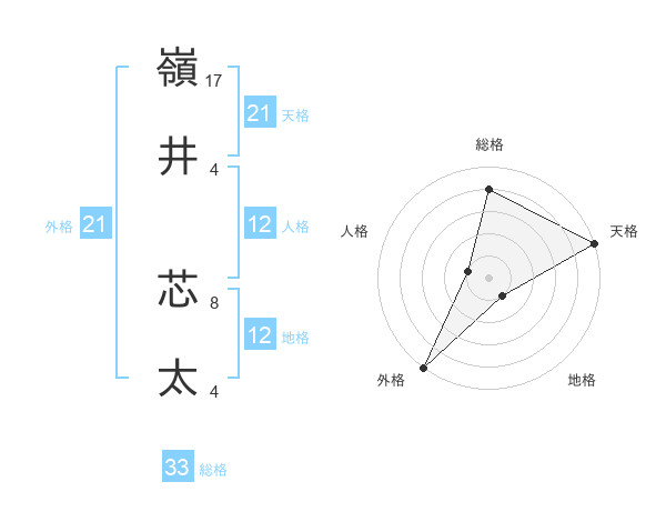 嶺井 芯太さんの天格は21画の5点!