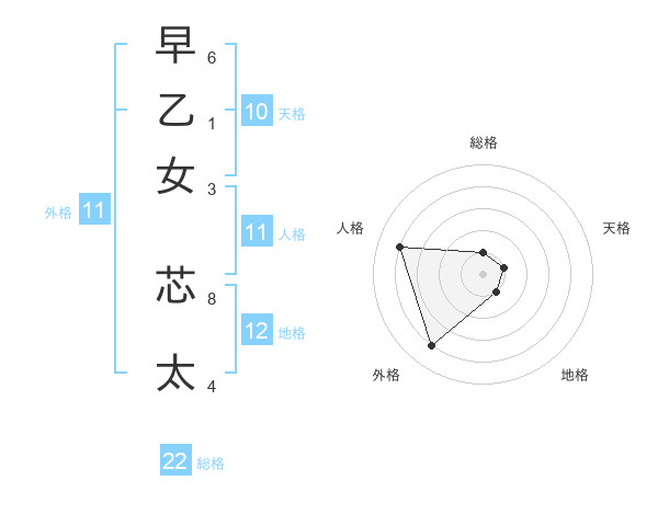 早乙女 芯太さんの総格は22画の1点!
