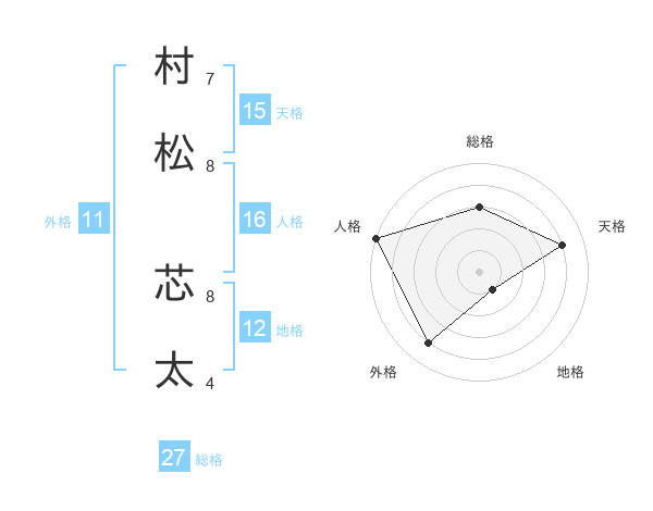 村松 芯太さんの総格は27画の3点!