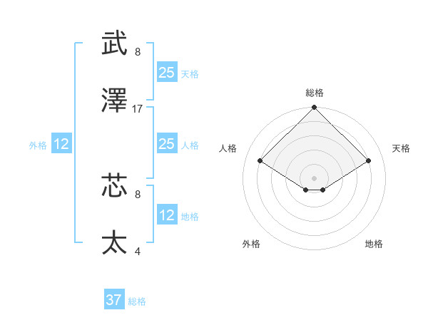 武澤 芯太さんの天格は25画の4点!