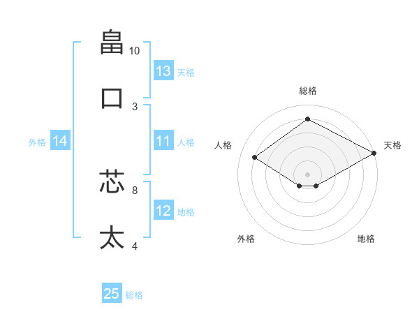 畠口 芯太さんを姓名の画数から五運を鑑定
