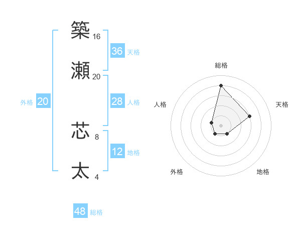 築瀬 芯太さんの総格は48画の4点!