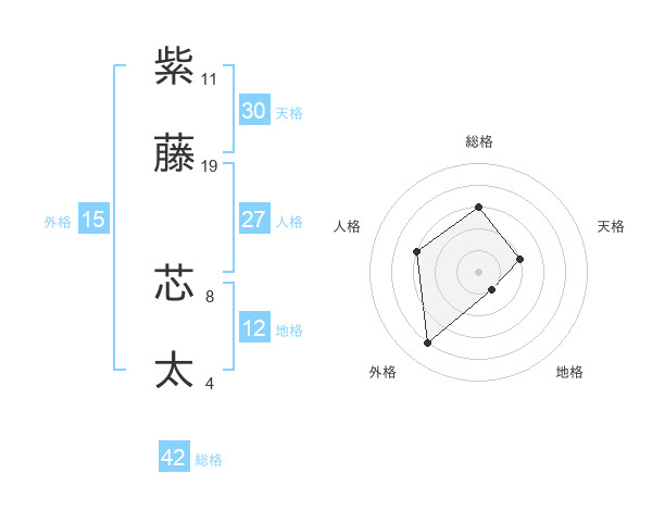 紫藤 芯太さんの総格は42画の3点!