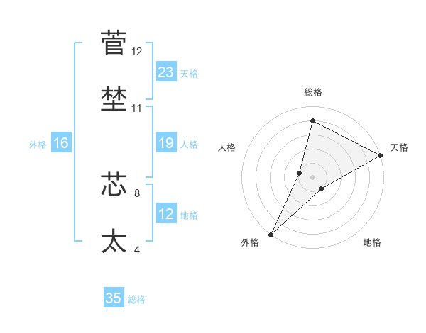 菅埜 芯太さんの総格は35画の4点!