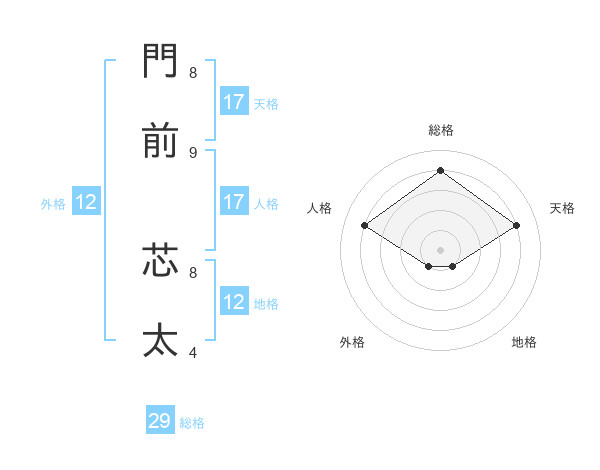 門前 芯太さんの総格は29画の4点!