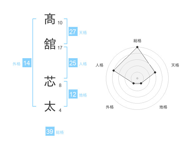 髙舘 芯太さんの総格は39画の5点!