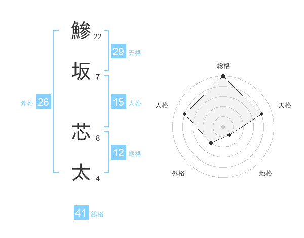 鰺坂 芯太さんの総格は41画の5点!