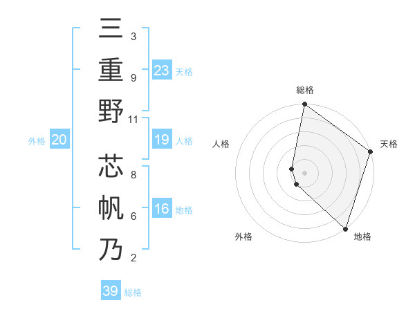 三重野 芯帆乃さんの総格は39画の5点
