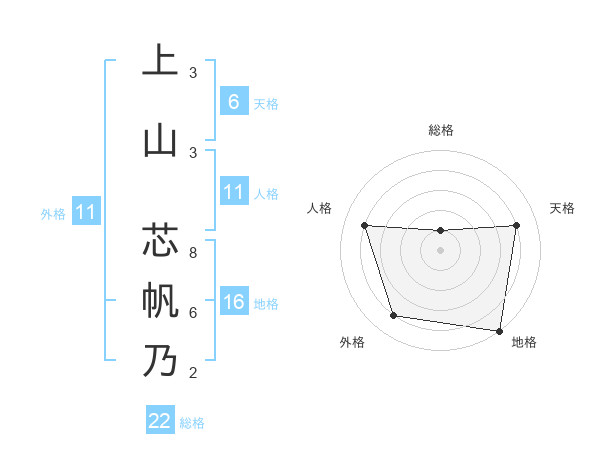 上山 芯帆乃さんを姓名の画数から五運を鑑定