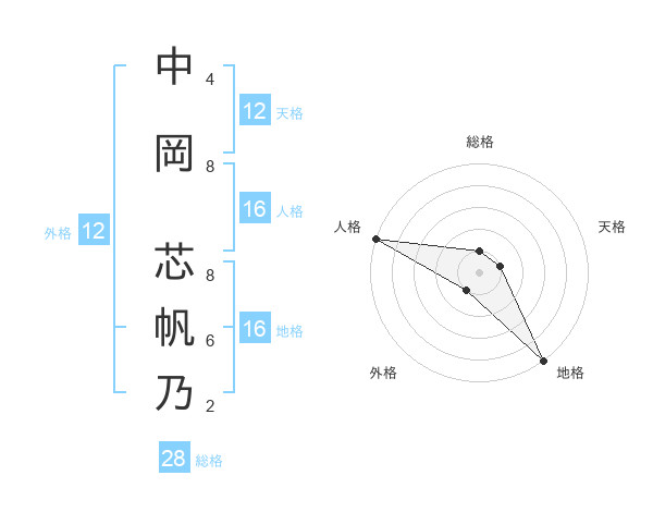 中岡 芯帆乃さんを姓名の画数から五運を鑑定