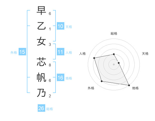 早乙女 芯帆乃さんを姓名の画数から五運を鑑定