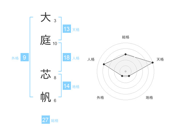 大庭 芯帆さんの天格は13画の5点!