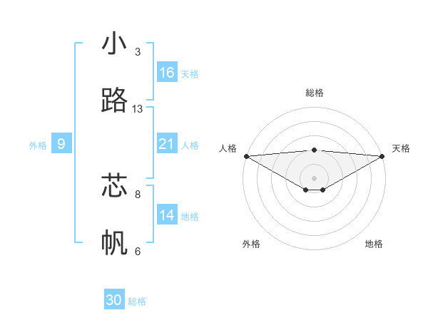 小路 芯帆さんの総格は30画の2点!