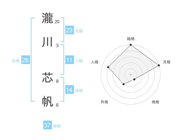 瀧川 芯帆さんを姓名の画数から五運を鑑定