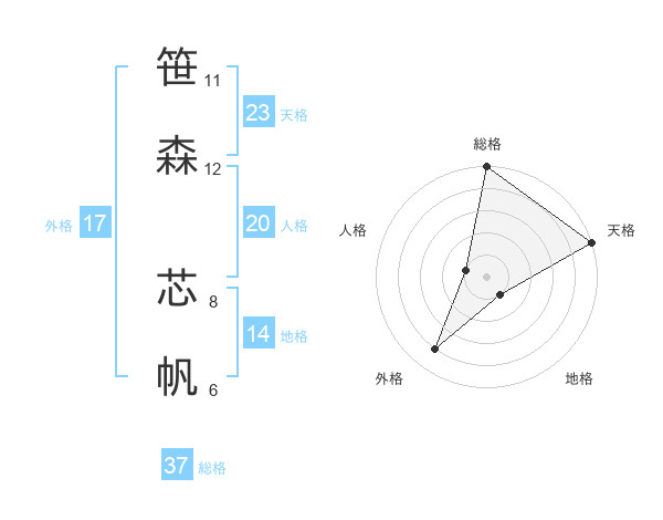 笹森 芯帆さんの天格は23画の5点!
