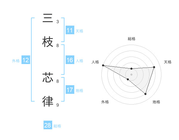 三枝 芯律さんを姓名の画数から五運を鑑定