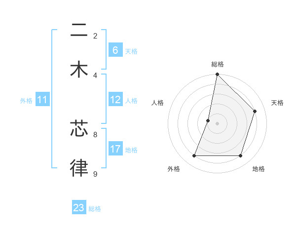 二木 芯律さんの地格は17画の4点!