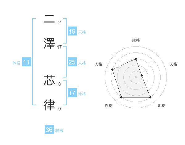 二澤 芯律さんを姓名の画数から五運を鑑定