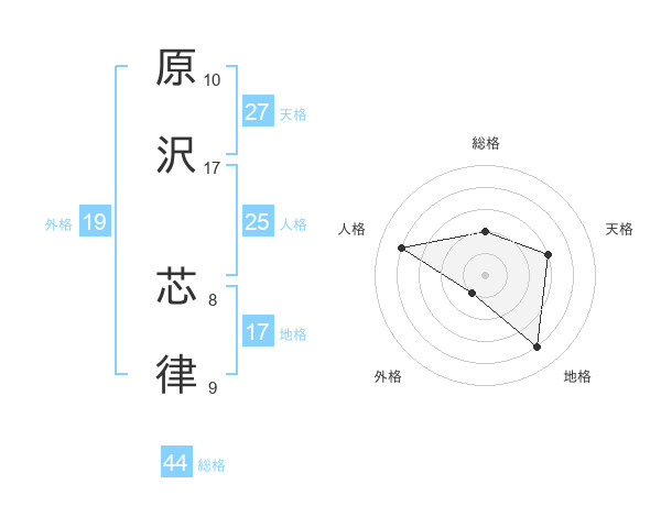 原沢 芯律さんを姓名の画数から五運を鑑定